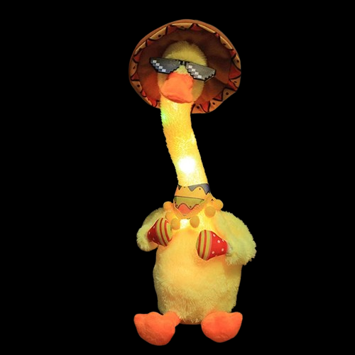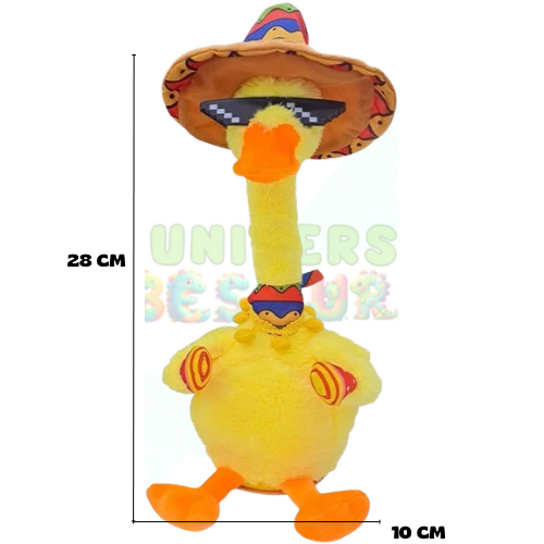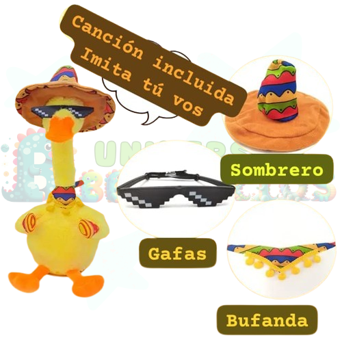 ¡Conoce al Pato Bailarín, el amigo más divertido de tus pequeños! 🎉 Este adorable peluche canta, baila y repite todo lo que dicen, llenando tu hogar de risas y magia. Con luces brillantes y un diseño suave, ¡es el compañero perfecto para las aventuras diarias!